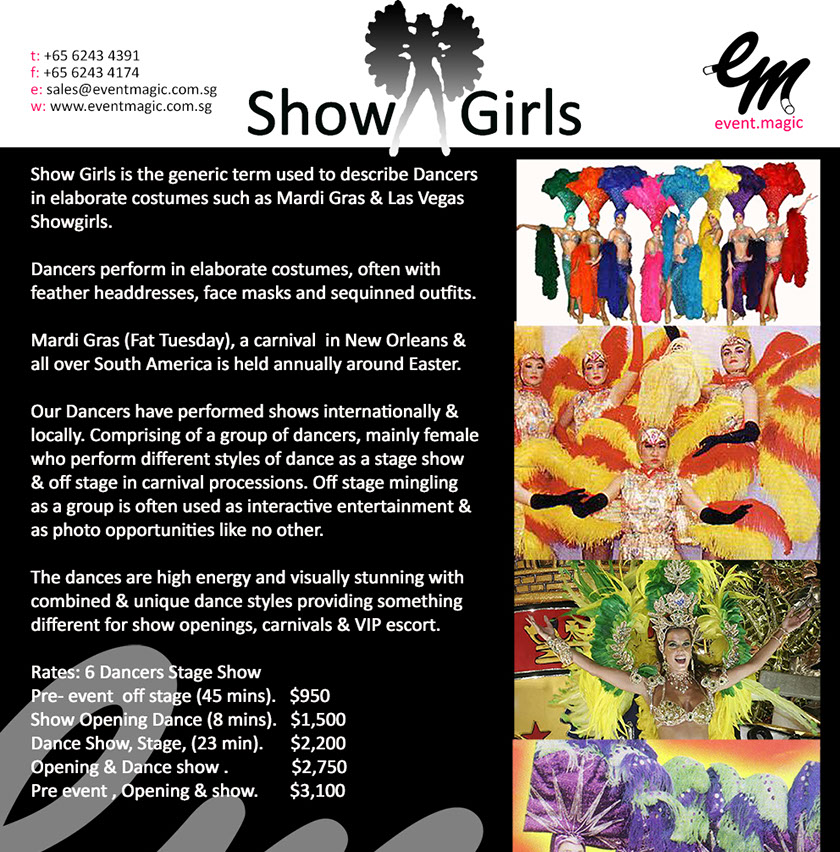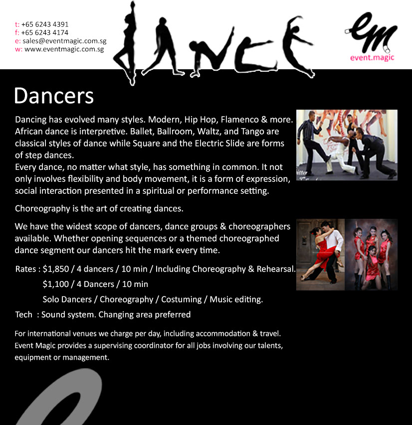 Stage acts for hire, Entertainment for hire, entertainer for hire, magician Singapore, circus Singapore, dancers for hire Singapore, Entertainment for hire, entertainer for hire, Event Magic is an international event and talent management firm based in Singapore. We specialize in talent management and event production that synergize with our clients